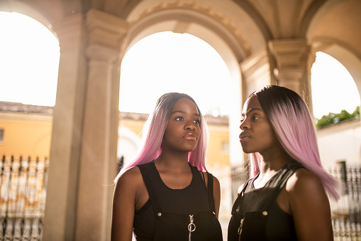 [name_f]Hayley[/name_f] [name_u]Delaney[/name_u] [left] and [name_f]Diana[/name_f] [name_f]Calista[/name_f] [right] [name_m]Dennison[/name_m] (29) are Akiko’s friends. Despite their matching hair and attire, they only wear it when they’re together because when separated, they actually have very different lives. [name_f]Hayley[/name_f] and [name_f]Diana[/name_f] call themselves “inter-famed”. [name_f]Hayley[/name_f] has been a star since her childhood, being famous as an actress back then before pursuing a career in singing. [name_f]Diana[/name_f] on the other hand, stepped out of the spotlight in childhood and has no plans to be there since. The reason why [name_f]Hayley[/name_f] is famous and [name_f]Diana[/name_f] is not was simply all by choice. Their mother was a famous actress and the girls starred in a movie when they were kids but after that, she let them decide for themselves whether to continue acting and becoming stars of their own. For [name_f]Hayley[/name_f] this was a dream; for [name_f]Diana[/name_f] this was a dread. So simply put: [name_f]Hayley[/name_f] said yes, [name_f]Diana[/name_f] said no, the rest is history.