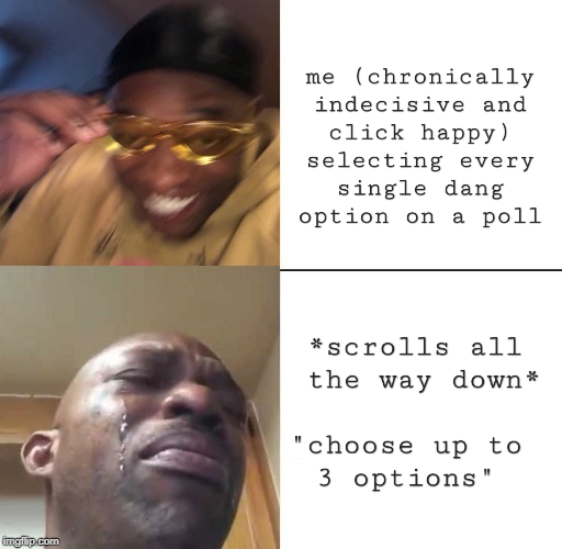 I’m out here selecting 27 absolutely fire options, only to scroll down and see that I have to put 25 back