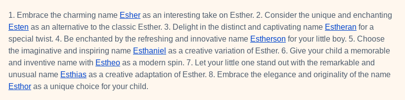 and I asked it for variants of [name_f]Esther[/name_f] and it said